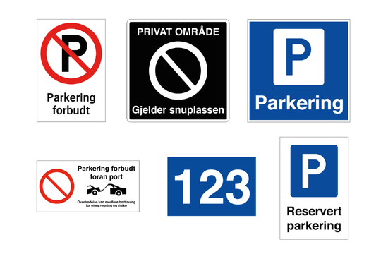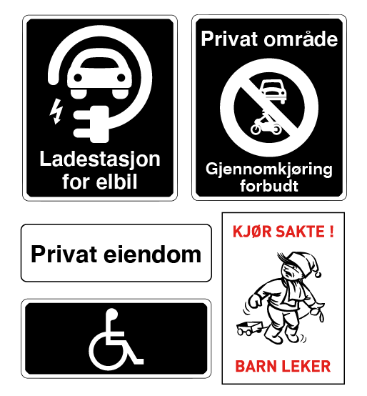 For bruk på privat grunn har vi også et stort utvalg av Privatrettslige skilt.