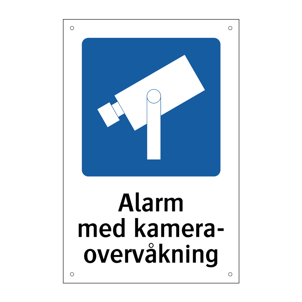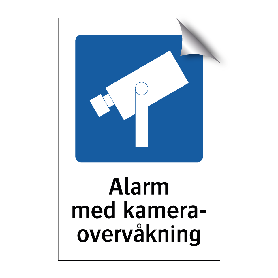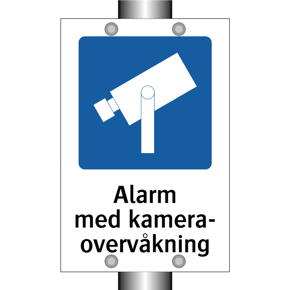 Kameraovervåkning skilt med tekst Alarm med kameraovervåkning.