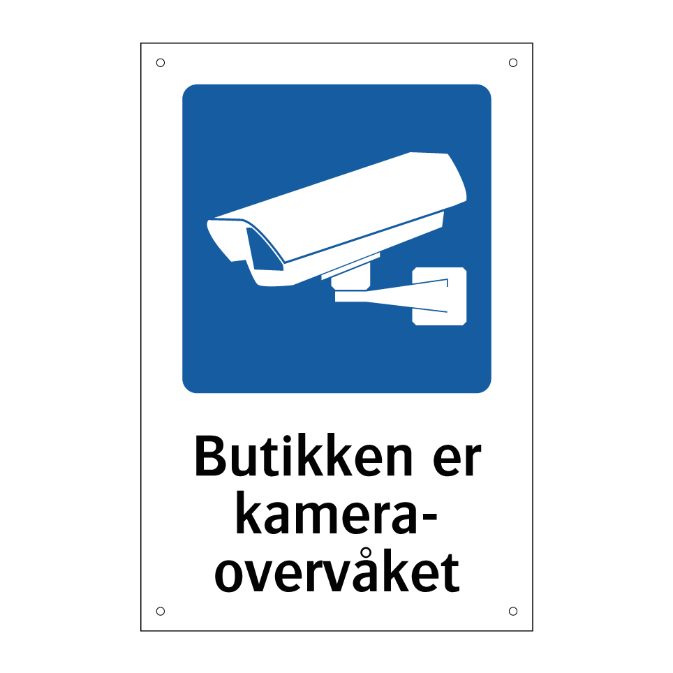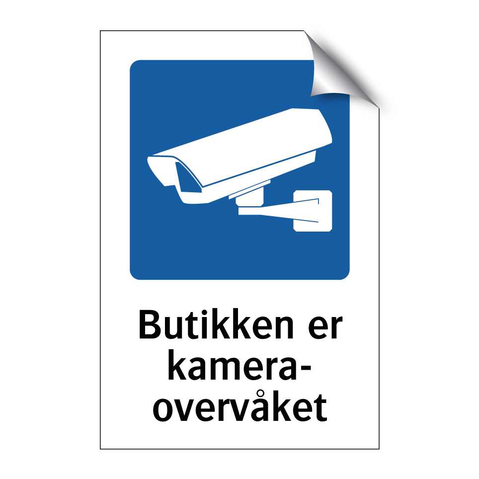 Kameraovervåkning skilt med tekst Butikken er kameraovervåket.