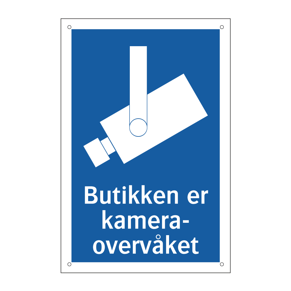 Kameraovervåkning skilt med tekst Butikken er kameraovervåket.