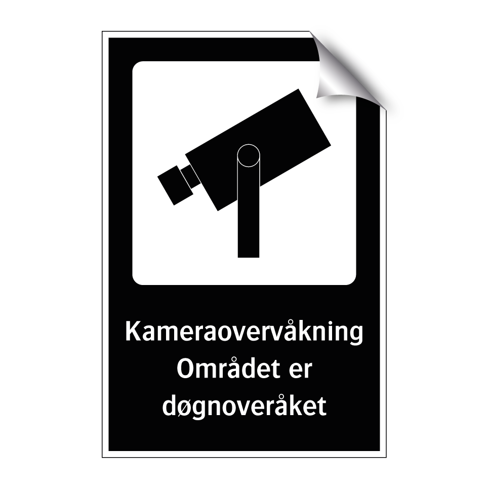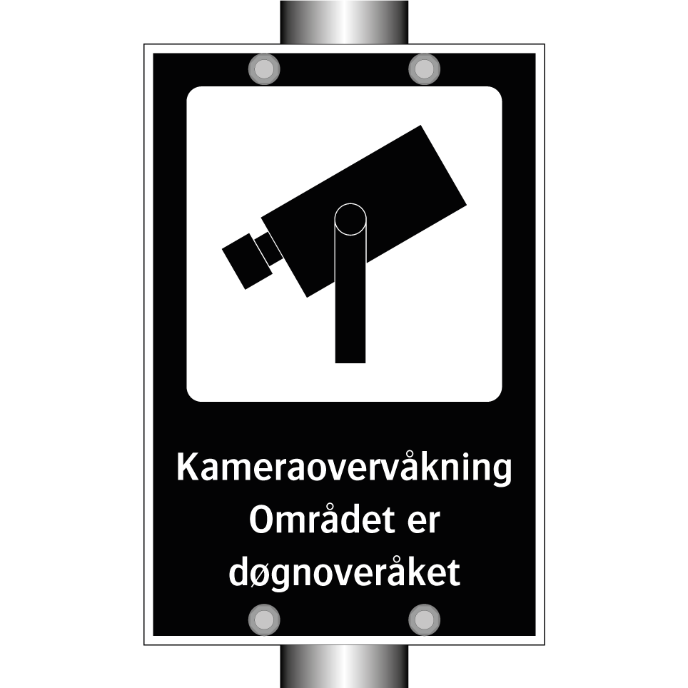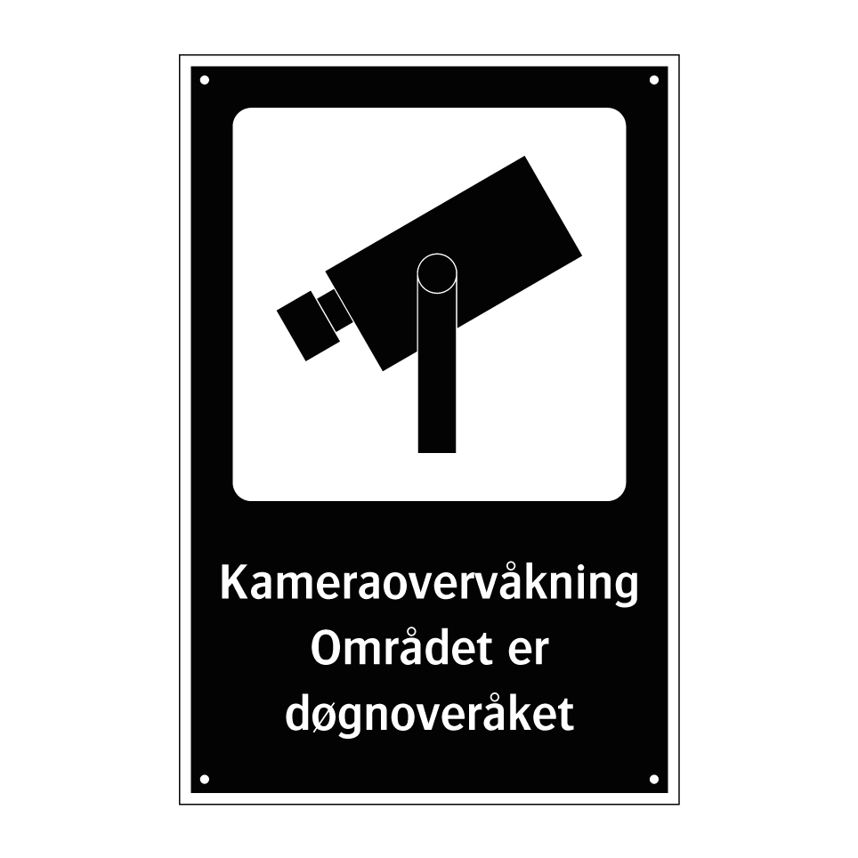 Kameraovervåkning skilt med tekst Kamera overvåkning - Området er døgnoveråket.