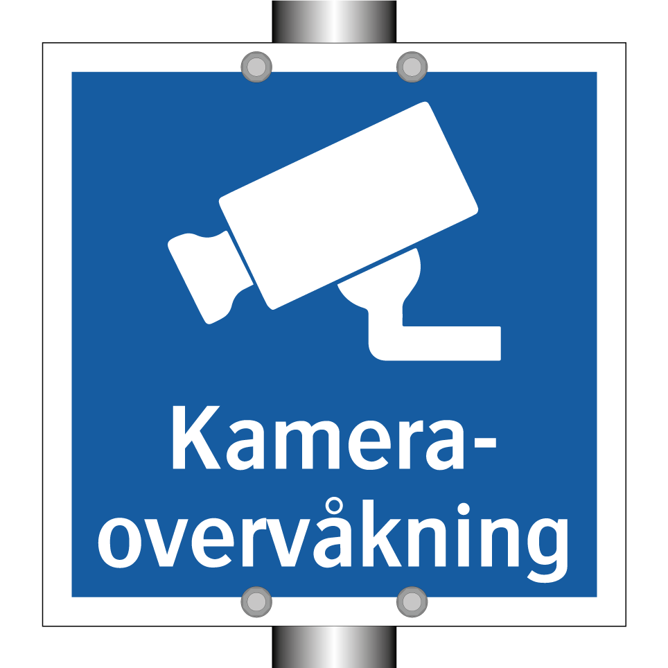 Kameraovervåkning skilt med tekst Kameraovervåkning.Velg mellom mange forskjellige materialer og størrelser - aluminium, plast og selvklebende folie (med eller uten refleks egenskaper).Det er mulig å velge festemetode til skiltet; Skruehull, Dobbeltsidig teip eller Hull til stolpe (Skiltklammer og annet monteringstilbehør finner du her). Det trengs to skiltklammer per skilt for stolpemontering.Lenger ned på siden, under overskriften Andre lignende produkter, finner du lenker til lignende skilt.Finner du ikke det du leter etter? Vi kan ordne det meste. Kontakt oss via chatten eller kontaktskjemaet så hjelper vi deg!Leveringstid: Produsert og sendt innen tre virkedager.
