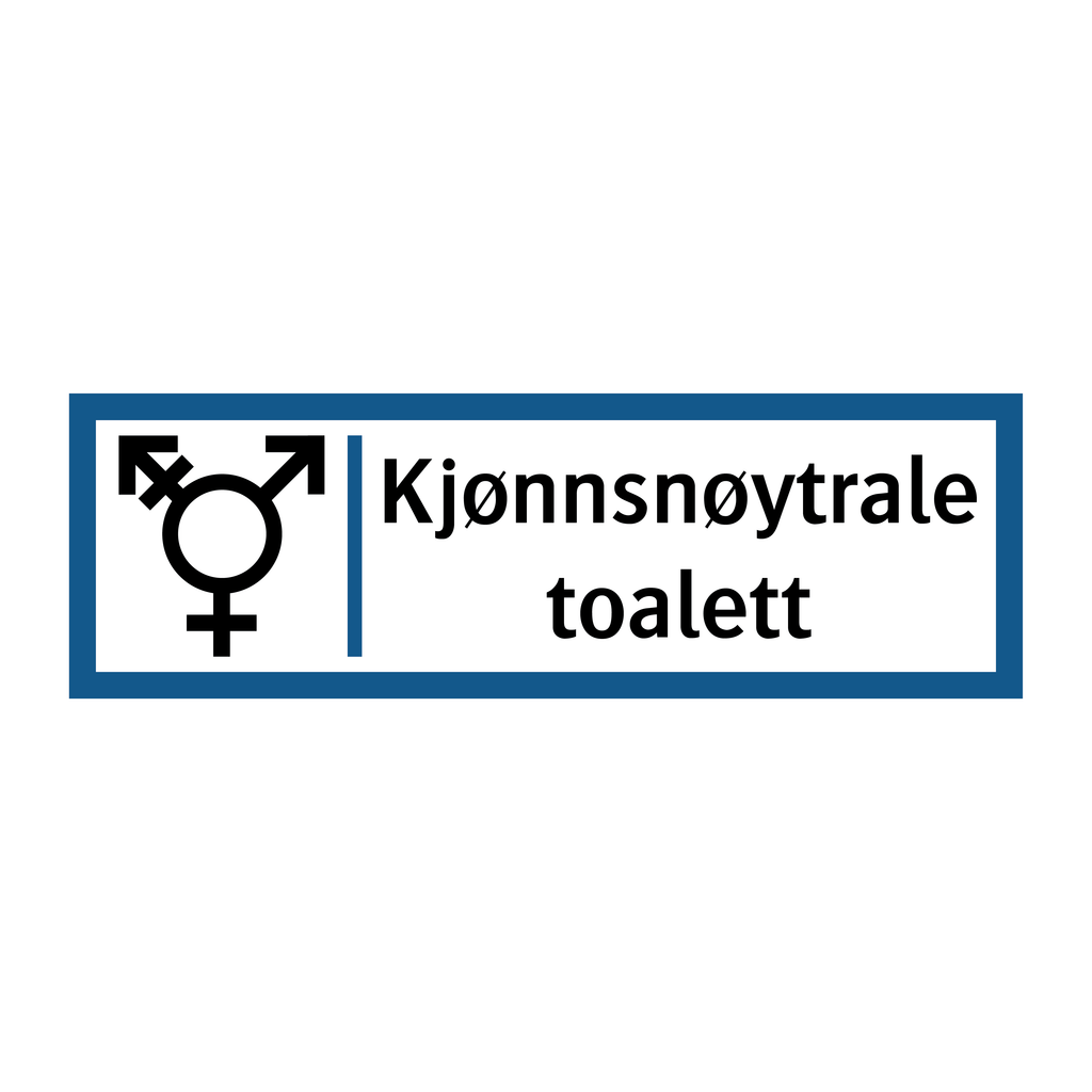 Informasjonsskilt med tekst Kjønnsnøytrale toalett