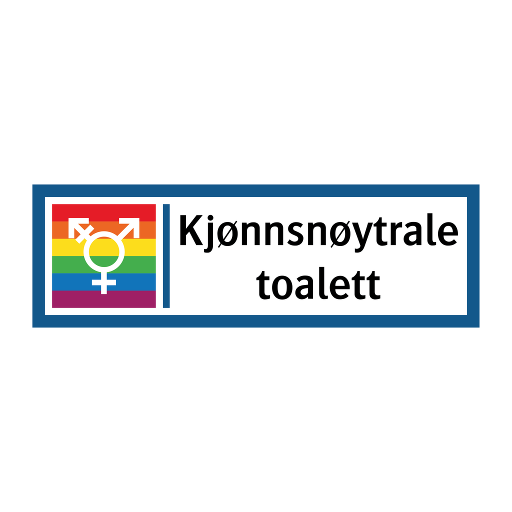 Informasjonsskilt med tekst Kjønnsnøytrale toalett