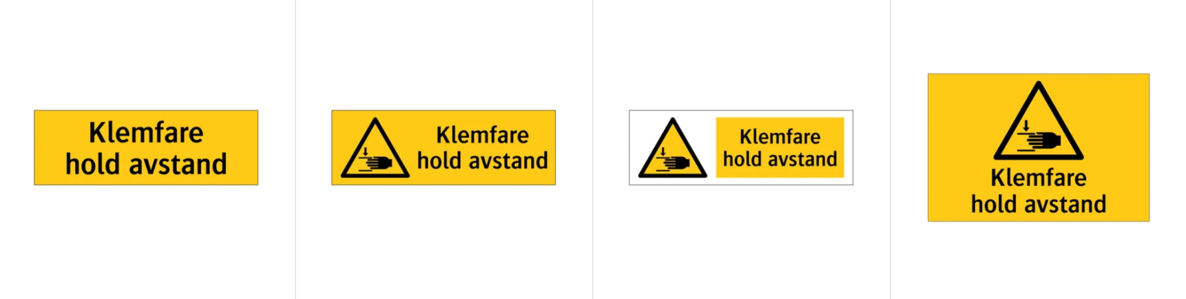 Finner du ikke det du leter etter? Lag ditt eget sikkerhetsskilt med egen tekst og valg av symbol.