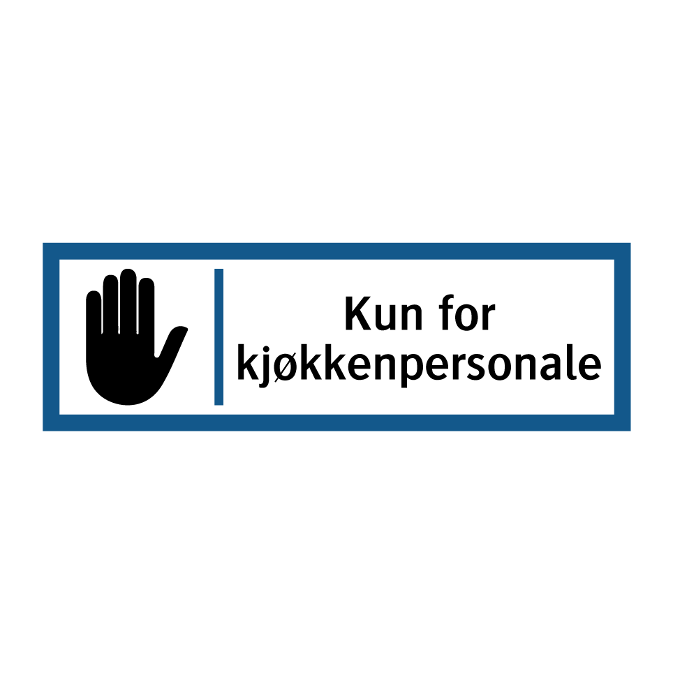Informasjonsskilt med tekst Kun for kjøkkenpersonale