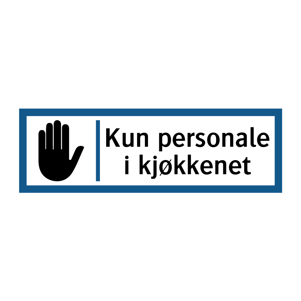 Informasjonsskilt med tekst Kun personale i kjøkkenet