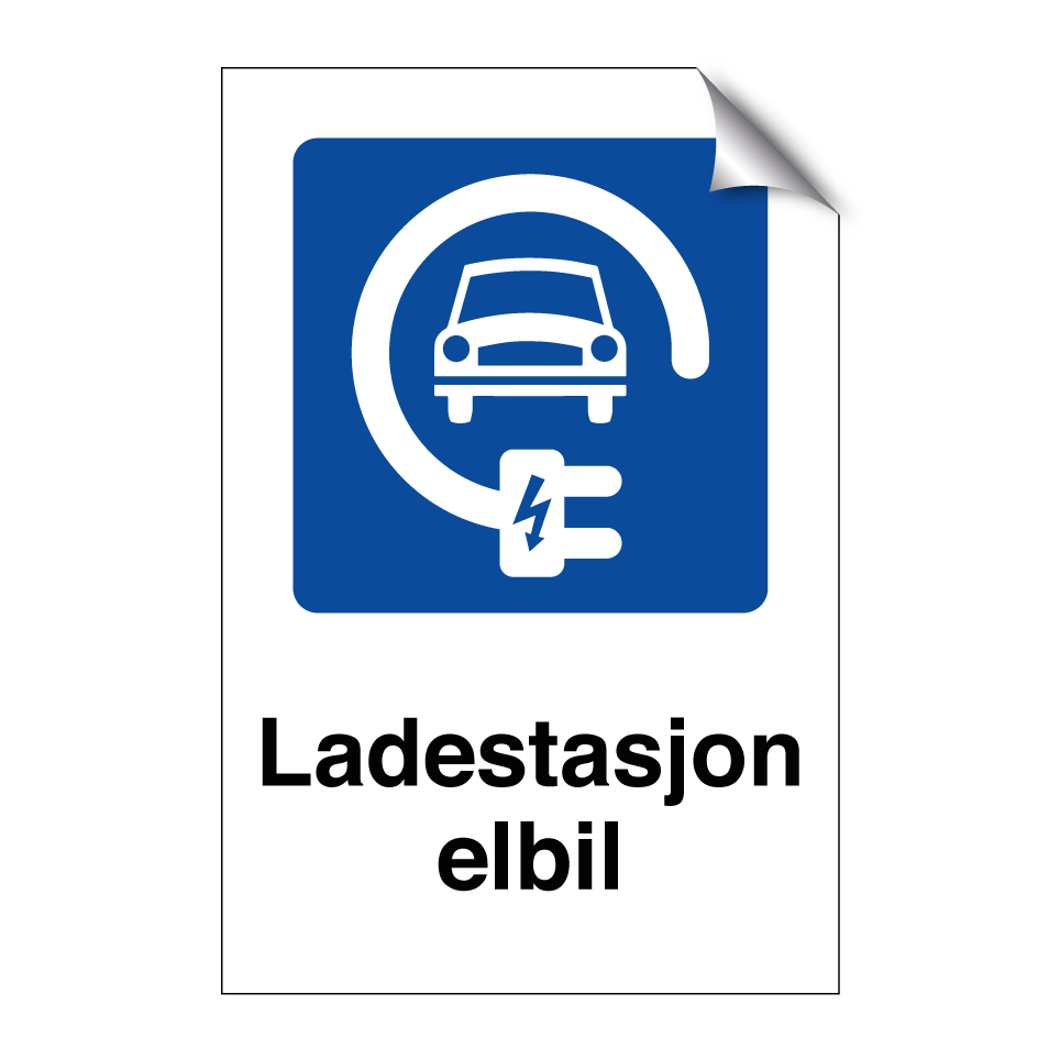 Parkeringsskilt med tekst Ladestasjon elbil.