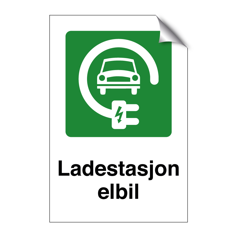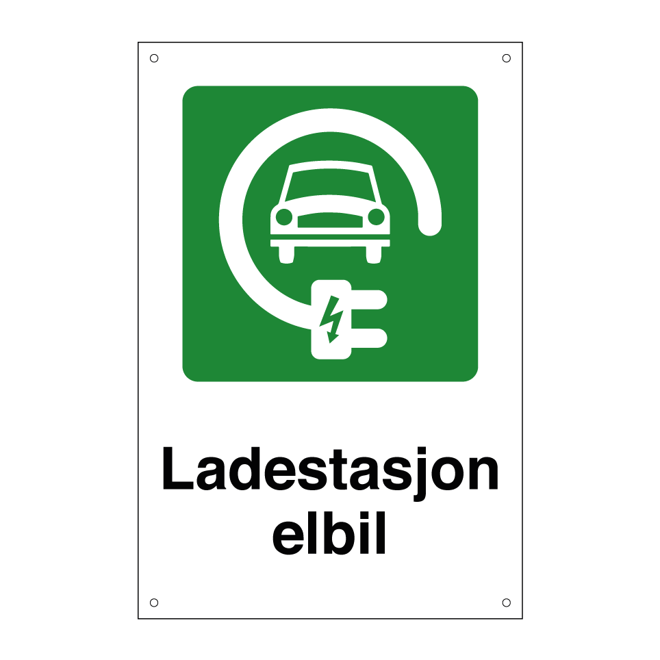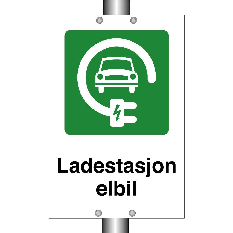 Parkeringsskilt med tekst Ladestasjon elbil.