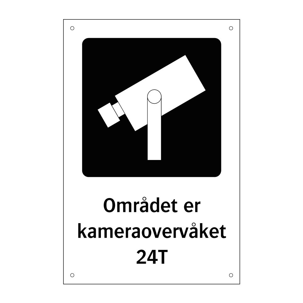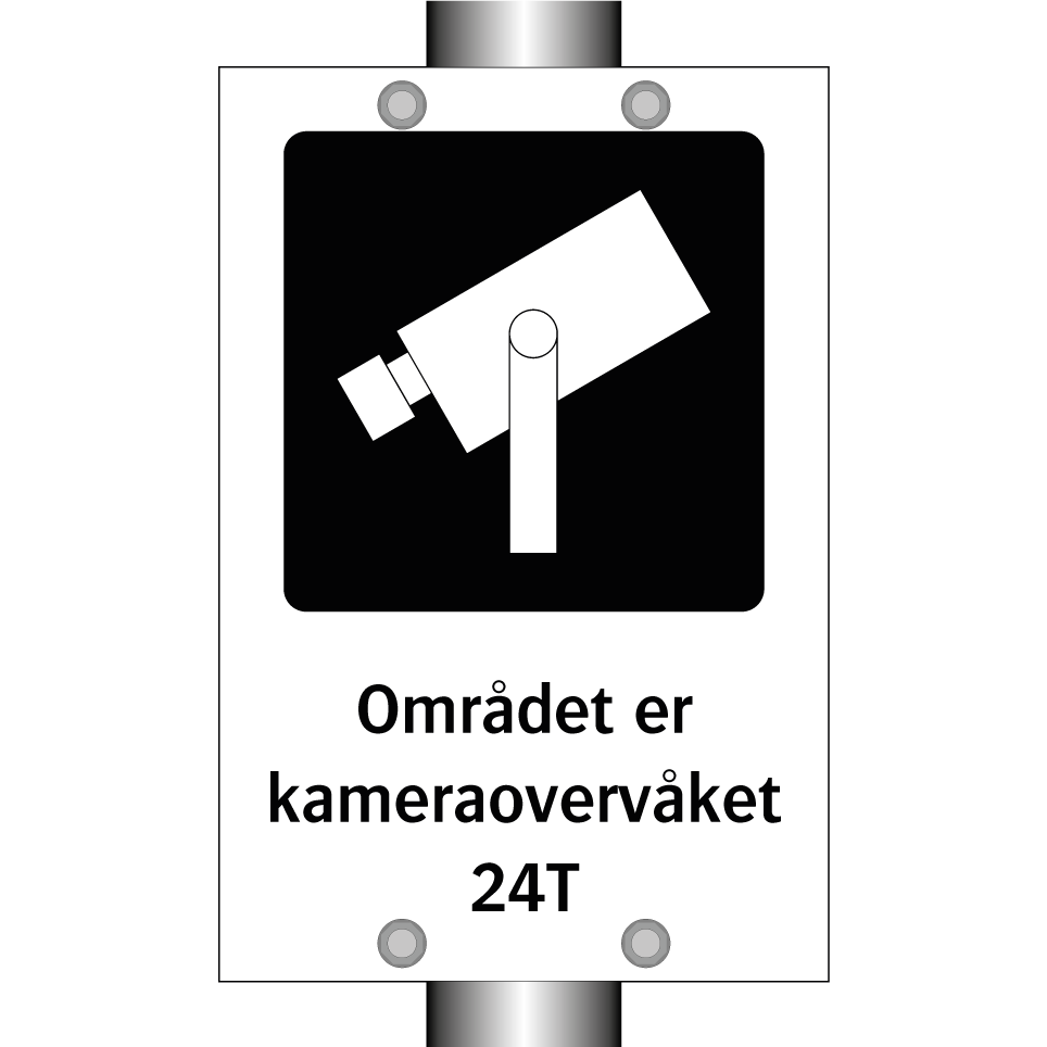 Kameraovervåkning skilt med tekst Området er kameraovervåket 24T.
