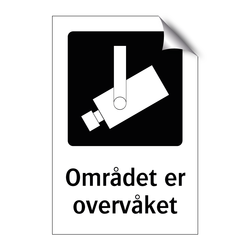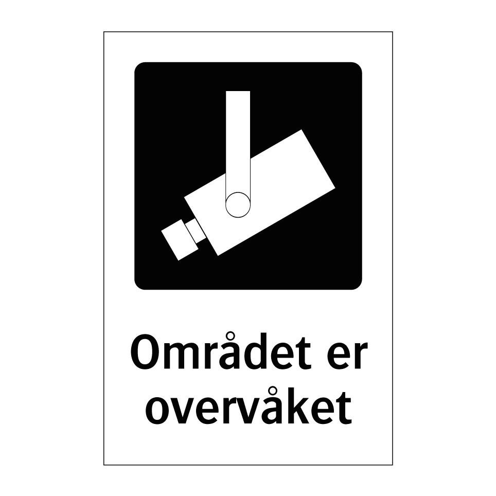 Kameraovervåkning skilt med tekst Området er overvåket.
