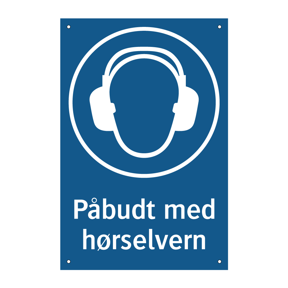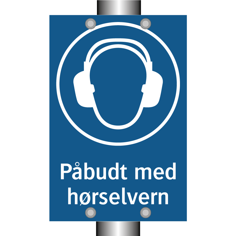 Påbudsskilt med tekst Påbudt med Hørselvern.