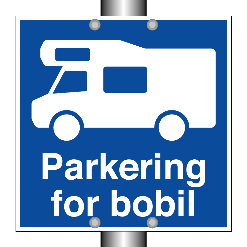 Det er mulig å velge festemetode til skiltet; Skruehull, Dobbeltsidig teip eller Hull til stolpe (Skiltklammer og annet monteringstilbehør finner du her). Det trengs to skiltklammer per skilt for stolpemontering.