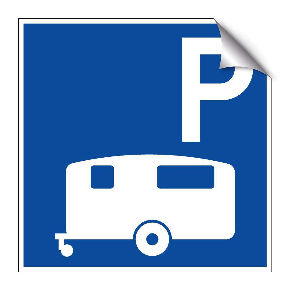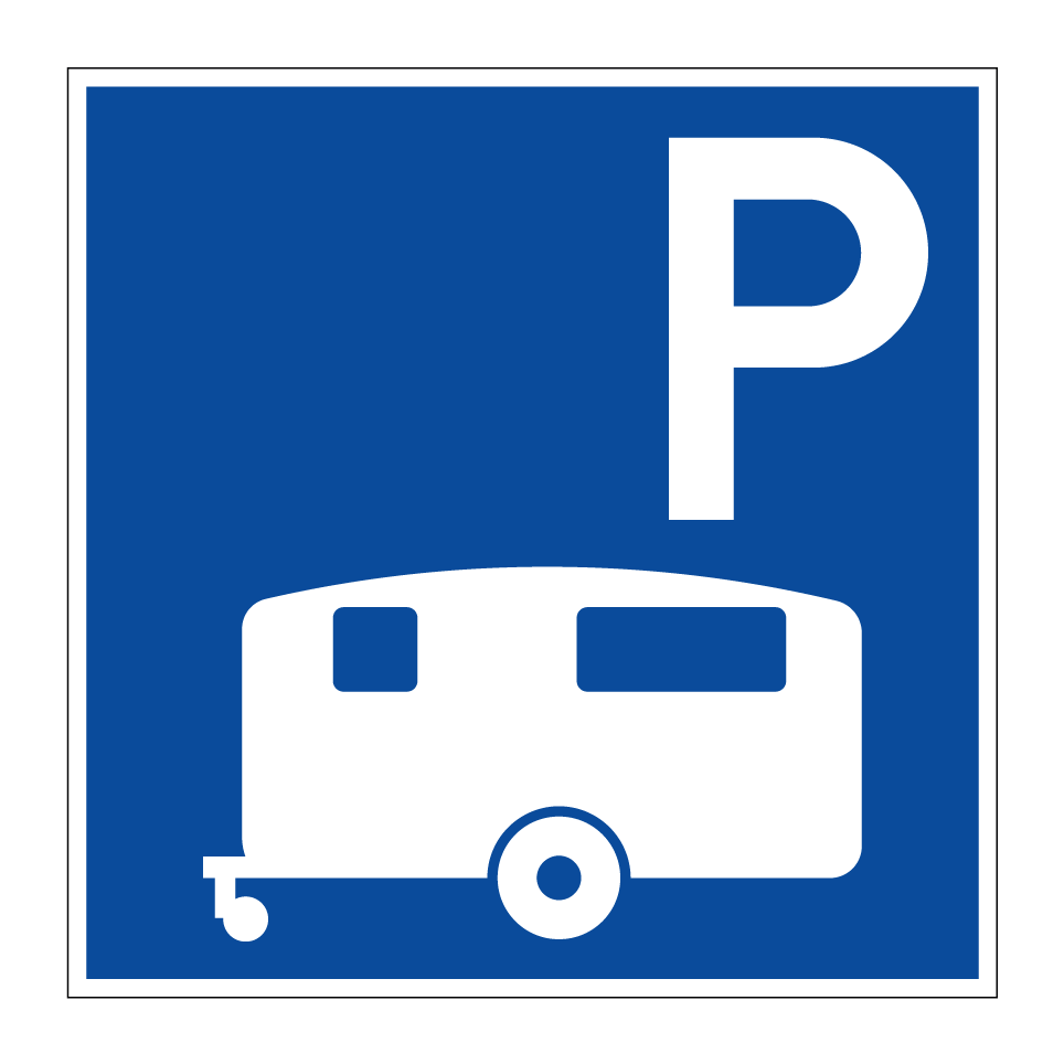 Parkeringsskilt med symbolet for: Parkering for campingvogn.