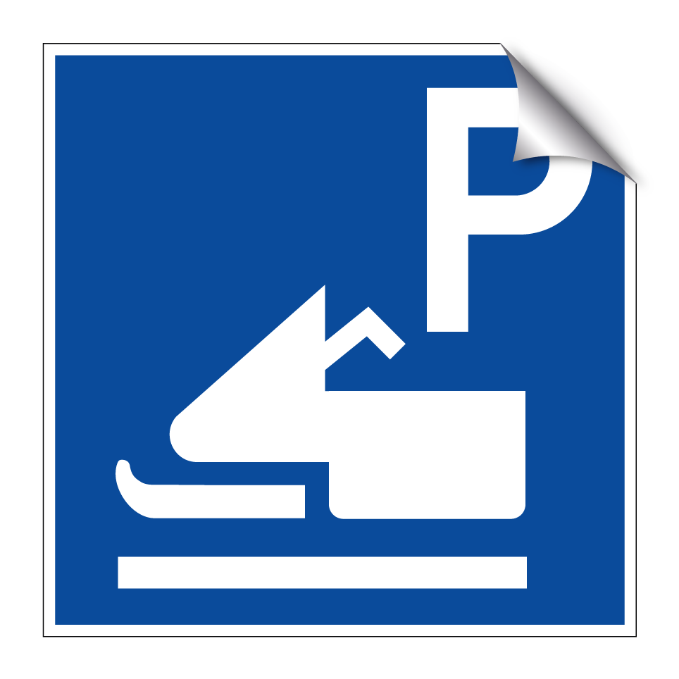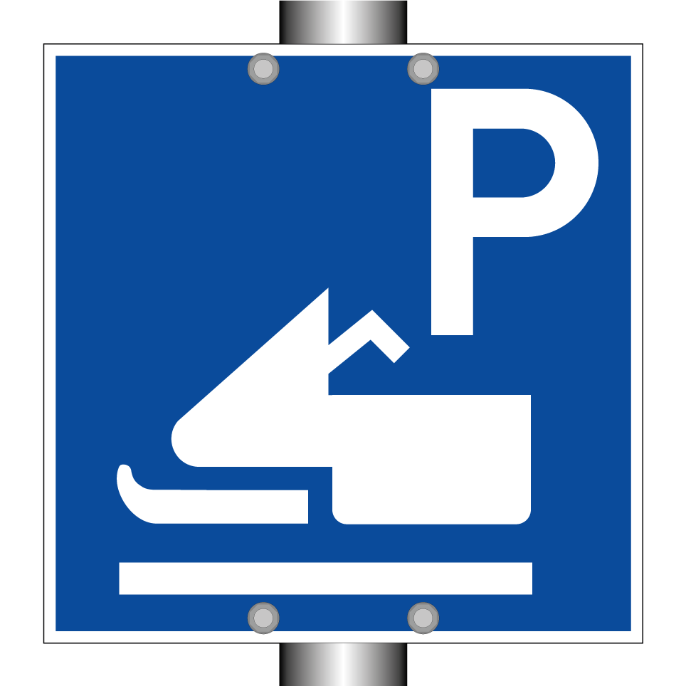 Parkeringsskilt med symbolet for: Parkering for Snøscooter.