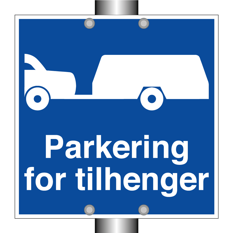 Parkeringsskilt med tekst Parkering for tilhenger.