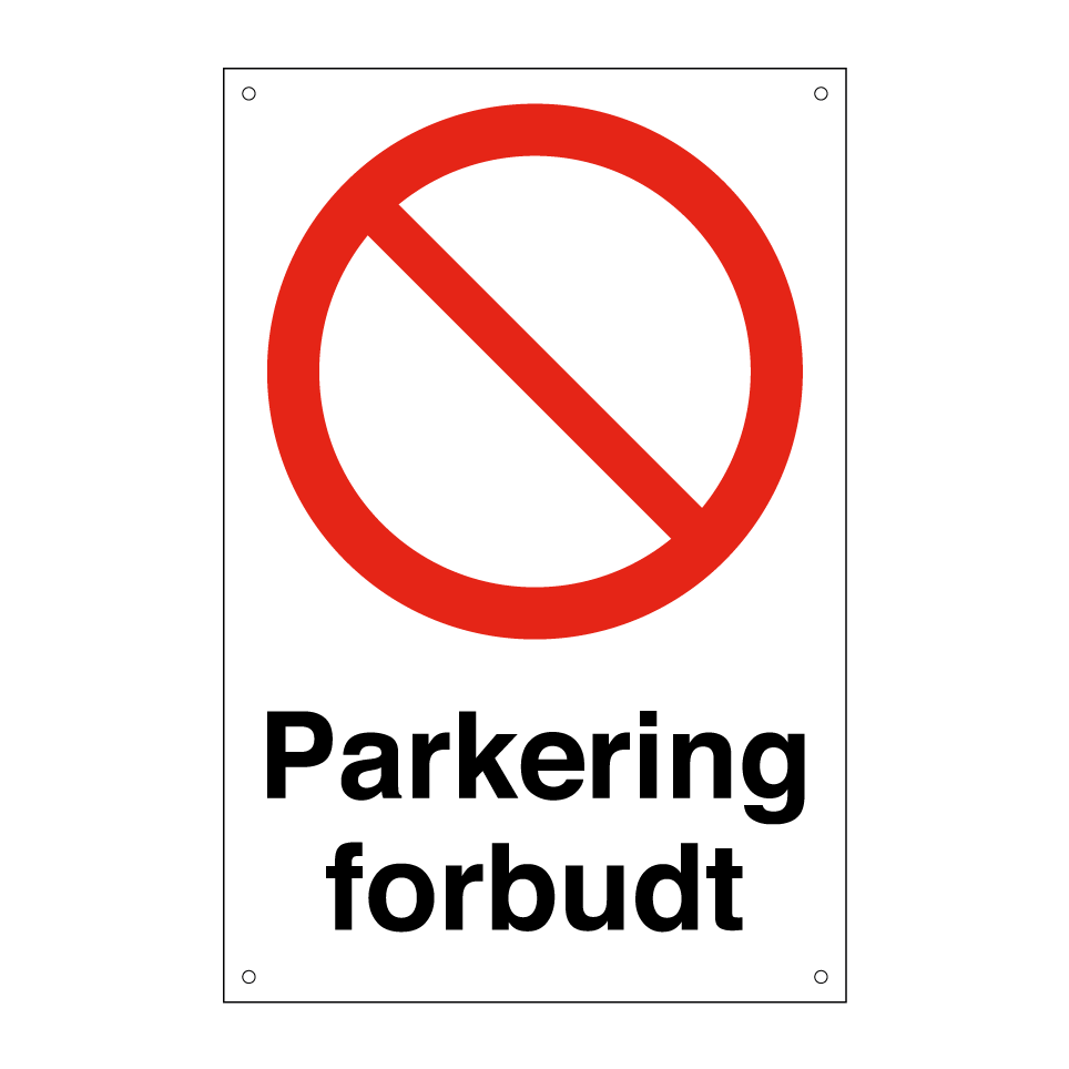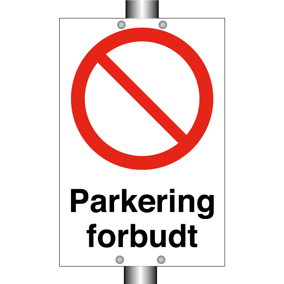 Forbudsskilt med tekst Parkering forbudt.