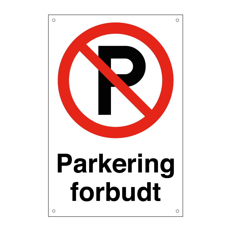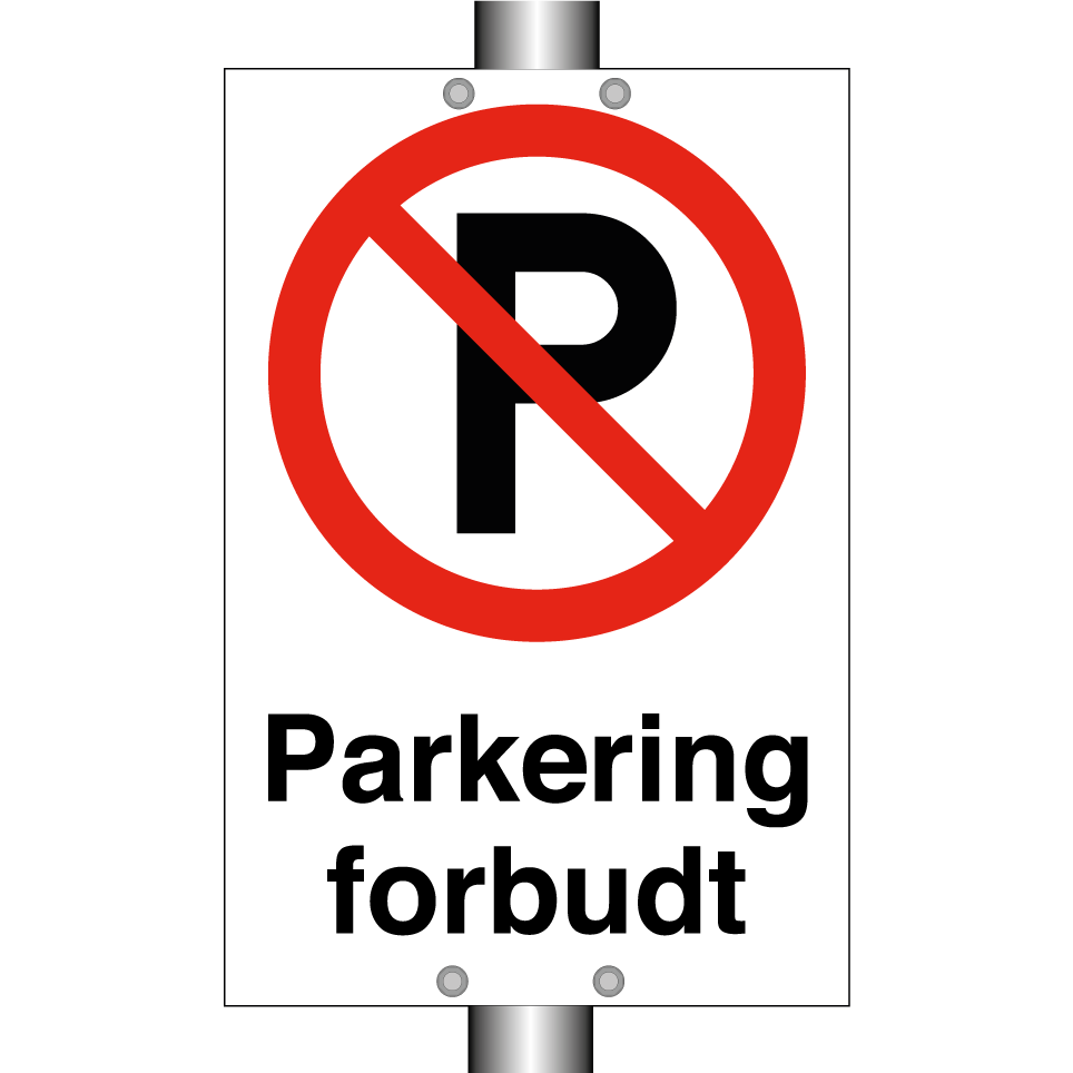 Forbudsskilt med tekst Parkering forbudt.