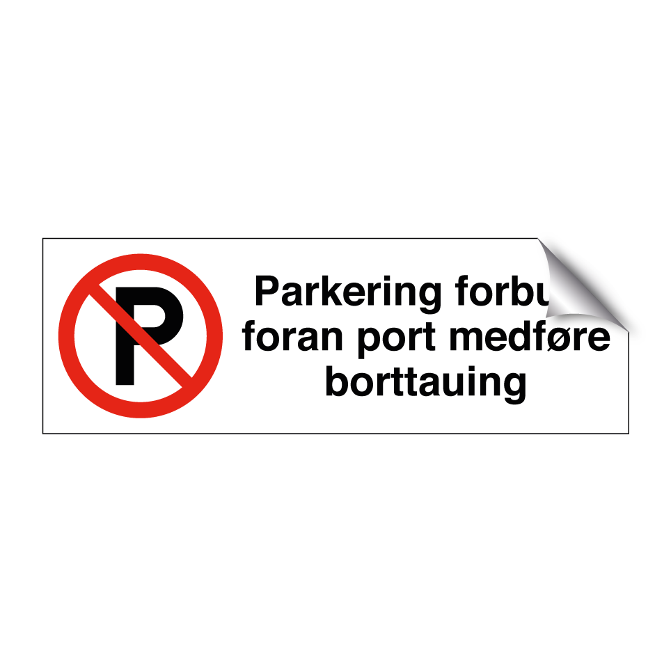 På kategorisidene under finner du flere produkter som ligner Parkering forbudt foran port medføre borttauing. Klikk nedenfor for å utforske flere produkter.