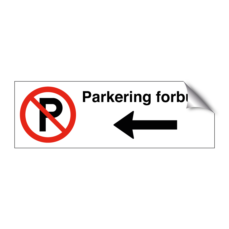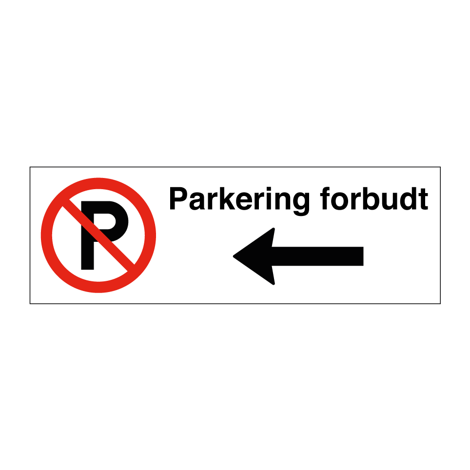 Forbudsskilt med tekst Parkering forbudt Venstre pil.