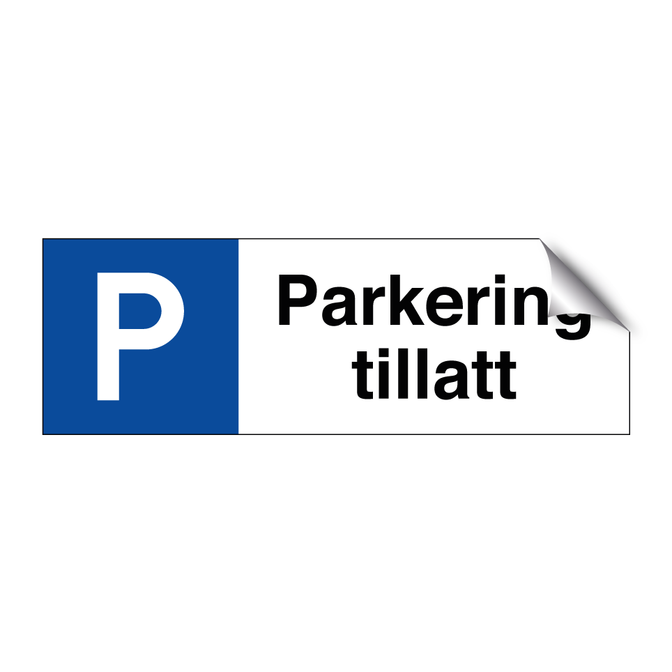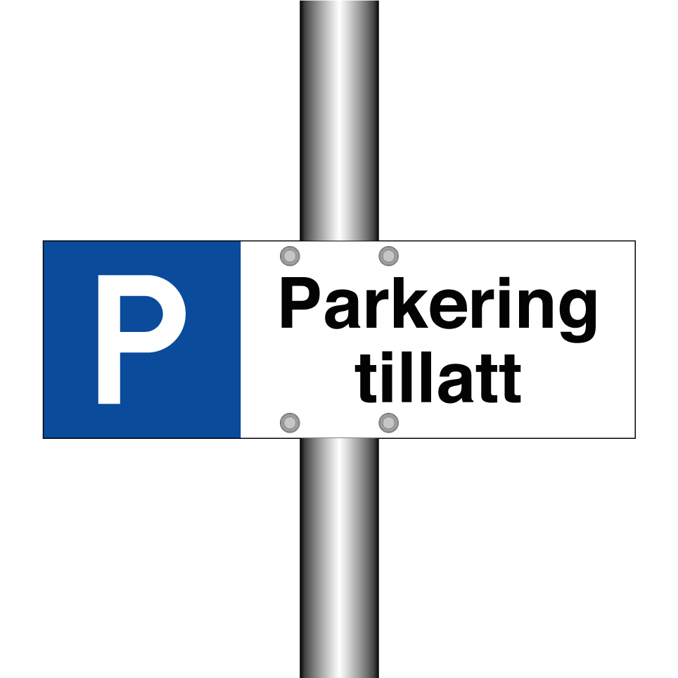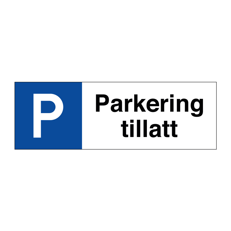 Parkeringsskilt med tekst Parkering tillatt.