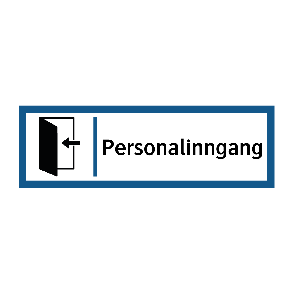 Informasjonsskilt med tekst Personalinngang