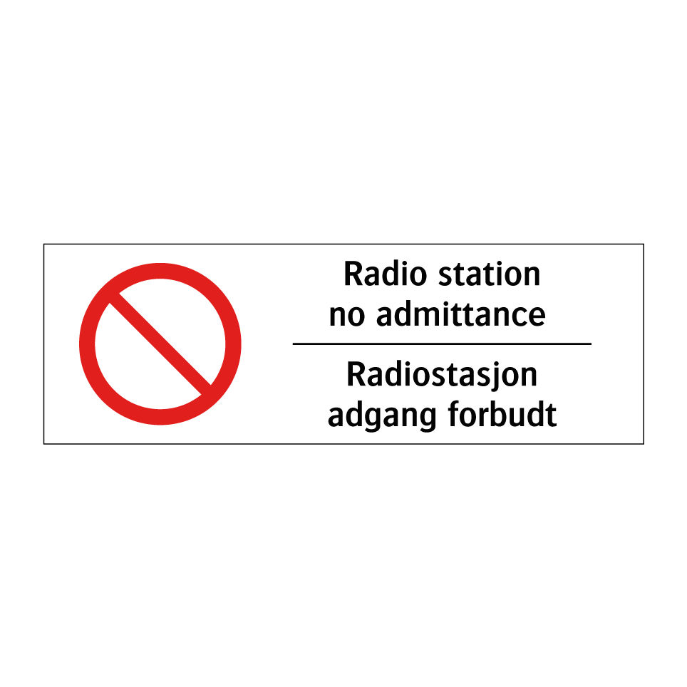 Forbudsskilt med tekst Radio station no admittance Radiostasjon adgang forbudt.