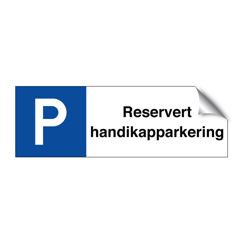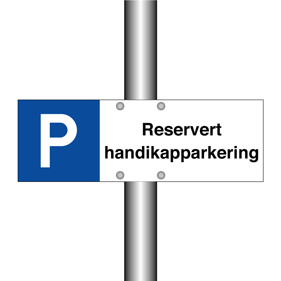 Parkeringsskilt med tekst Reservert handikapparkering.