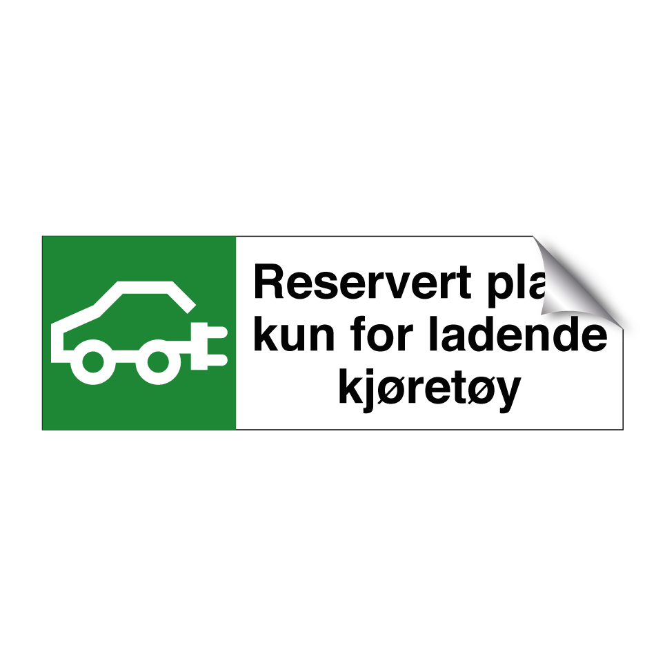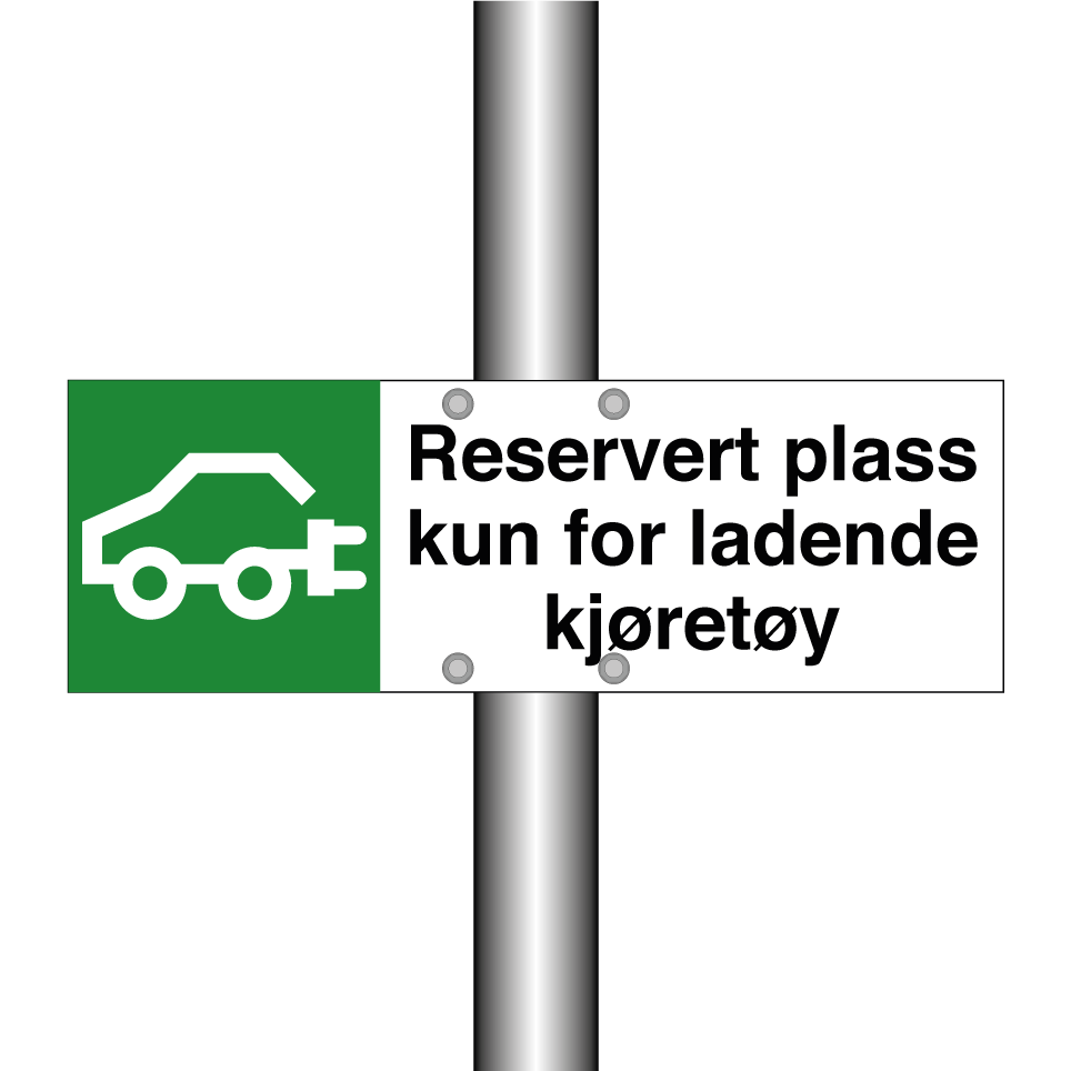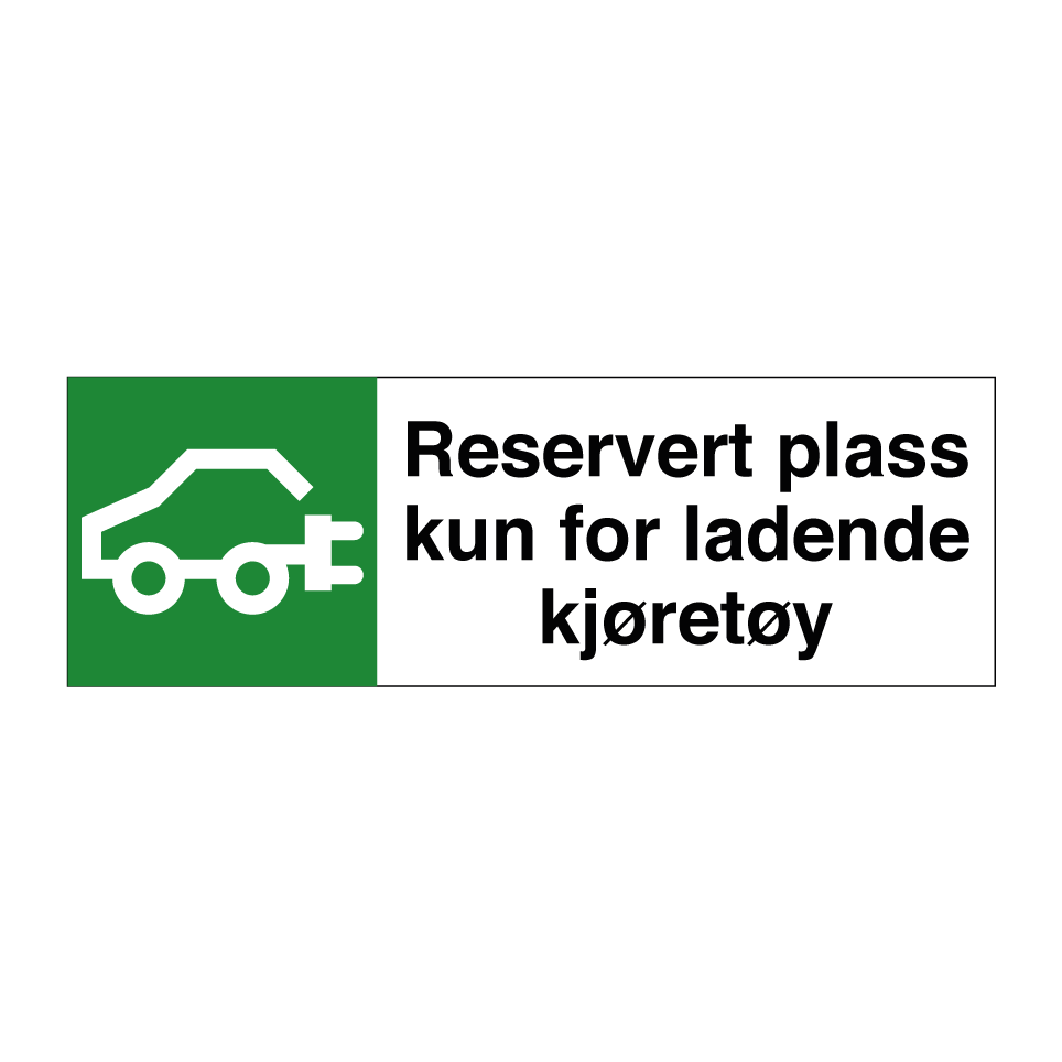 Parkeringsskilt med tekst Reservert plass kun for ladende kjøretøy.
