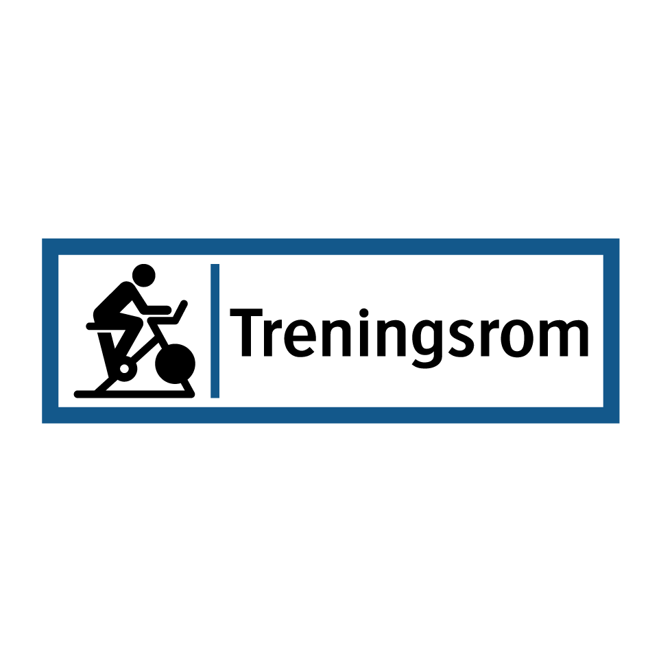 Informasjonsskilt med tekst Treningsrom