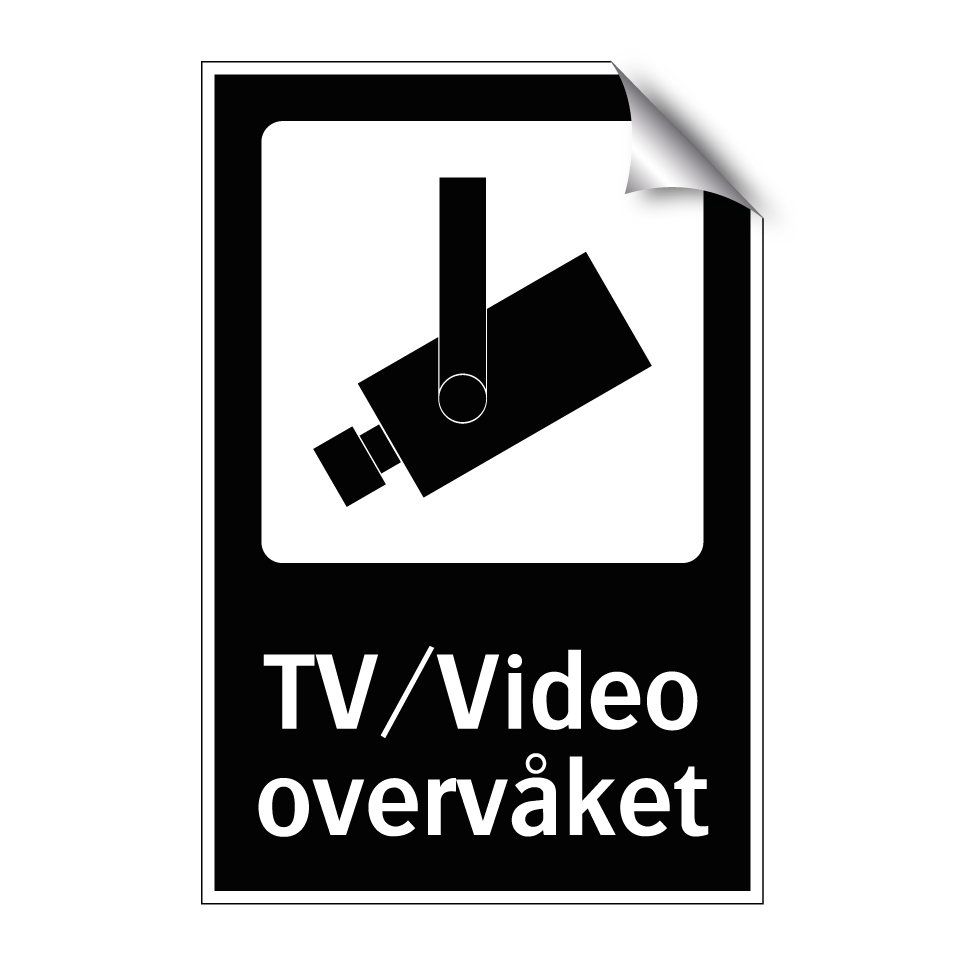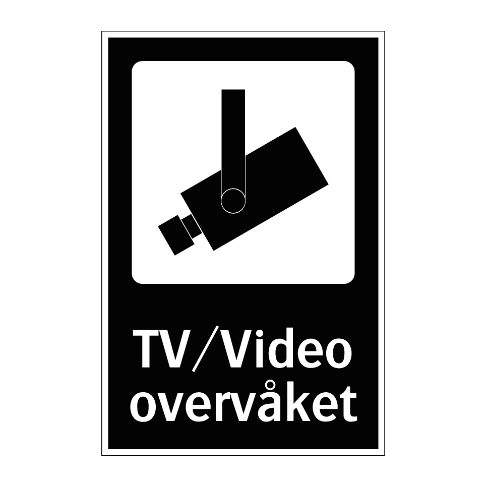 Kameraovervåkning skilt med tekst TV/Video overvåket.